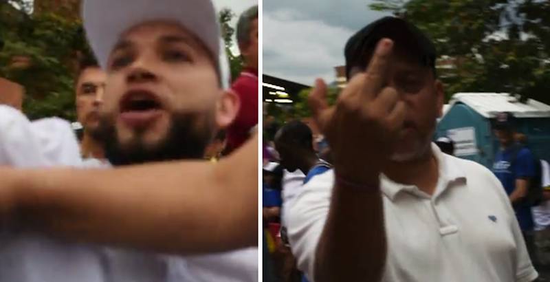 La periodista lo interpela diciendo: “¿Cuál amenazando? ¿Qué le pasa?” y el sujeto le dice: “¡Chao mi amor! (no se entiende) Petro, es de Petro, ¡Fuera, fuera!”.
