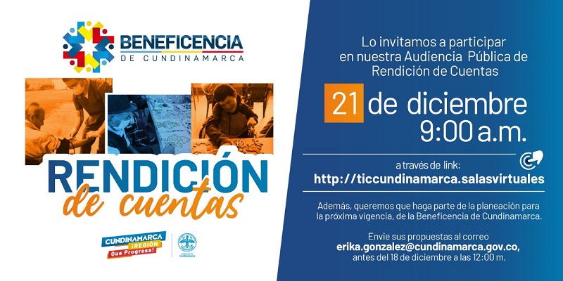 Con el objetivo de dar a conocer los logros más destacados en lo corrido de 2020, la Beneficencia de Cundinamarca realizará este 21 de diciembre a partir de las 9 de la mañana la audiencia pública de Rendición de cuentas.