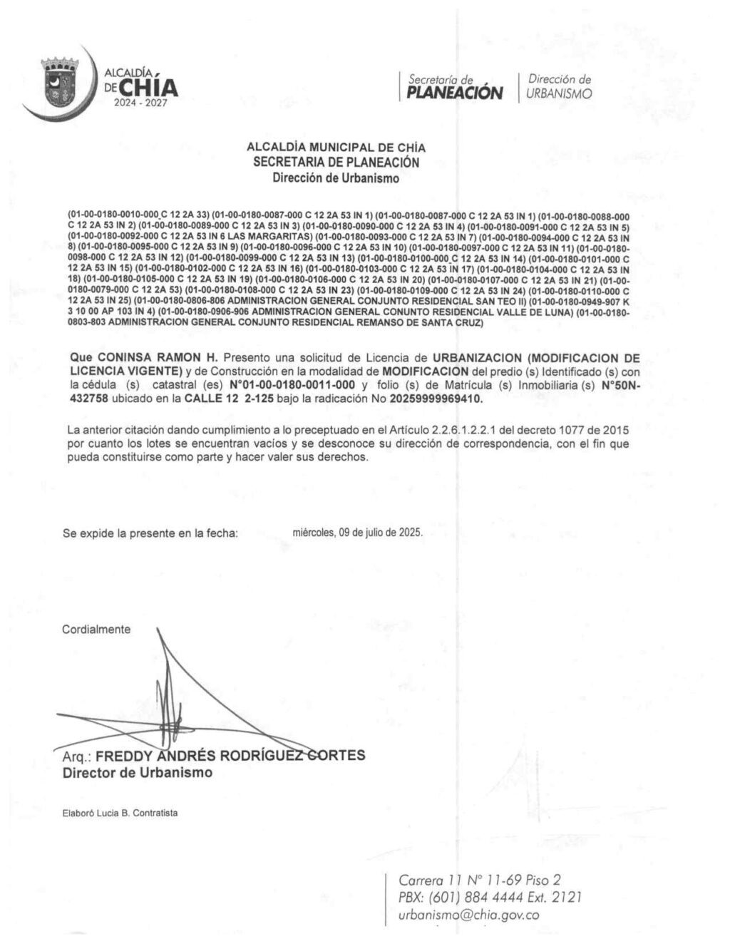 Actualidad Chía Edicto 1 min read Edicto Planeación Chía FacebookTweetEnviar por correoFacebook Comments Tags: Edicto Continue Reading Previous Chelsea desactivó a PSG para ser el primer campeón del nuevo Mundial de ClubesNext Miguel Uribe Turbay muestra avances en su recuperación tras atentado: continúa en UCI con pronóstico reservado. Deja una respuesta Cancelar la respuestaTu dirección de correo electrónico no será publicada. Los campos obligatorios están marcados con *Comentario * Nombre * Correo electrónico * Web Guarda mi nombre, correo electrónico y web en este navegador para la próxima vez que comente. More Stories 3 min read Actualidad Chía En Chía se inaugura la Planta Solar Fotovoltaica Camilo Arango Rueda 3 min read Actualidad Estilo de Vida Interés General Ingeniería Industrial de UNIAGRARIA: un motor del desarrollo productivo en Cundinamarca 3 min read Actualidad Versión impresa El mismo desfile de cada cuatro años: Elecciones de Congreso