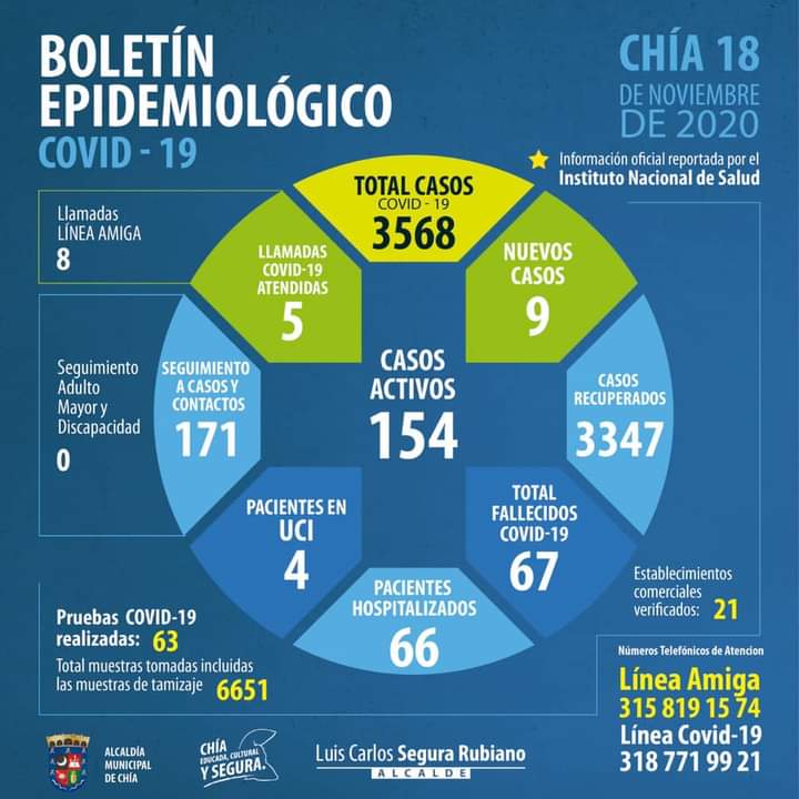 Estas son las cifras del miércoles 18 de noviembre. ¡En Chía, con autocuidado y...