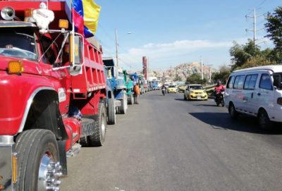 Al amanecer nuevamente algunos sectores de Bogotá bloqueados por los camioneros, se afecta la movilidad...