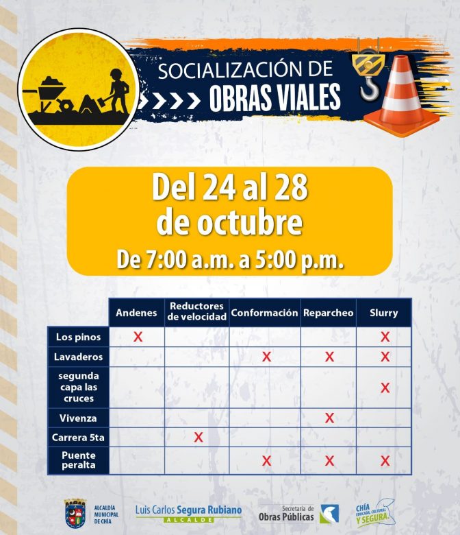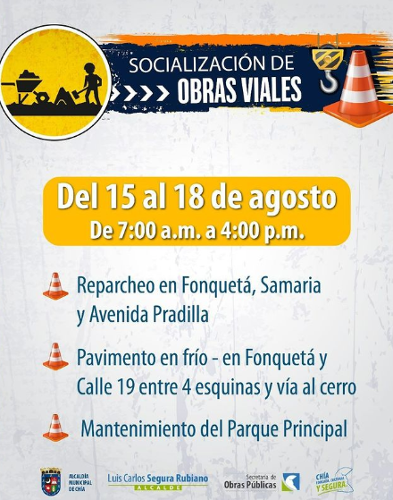 #SecObrasPúblicasChía|| Cronograma Presentamos las actividades que durante esta semana, se encuentran en ejecuciónContinuamos con estas...